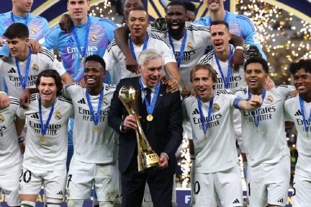 过程有些波折,结局皆大欢喜。在两年前见证了史上最刺激世界杯决赛的卡塔尔卢塞尔体育场,皇马兵不血刃,以3比0完胜墨西哥帕丘卡,夺得国际足联洲际杯冠军。这也是继欧洲超级杯之后,皇马本赛季的第二座奖杯,以及2024年的第5座奖杯。前一天刚在这里捧起世界足球先生奖杯的维尼修斯传射建功,皇马这一趟卡塔尔之行可谓双喜临门。此外,这是皇马队史第9次赢得洲际杯/世俱杯冠军,也是安切洛蒂在皇马夺得的第15座冠军奖杯,安帅自此成为皇马俱乐部历史上夺冠最多的主帅,而在一天前他还捧起了自己的第一座国际足联年度最佳教练奖杯。